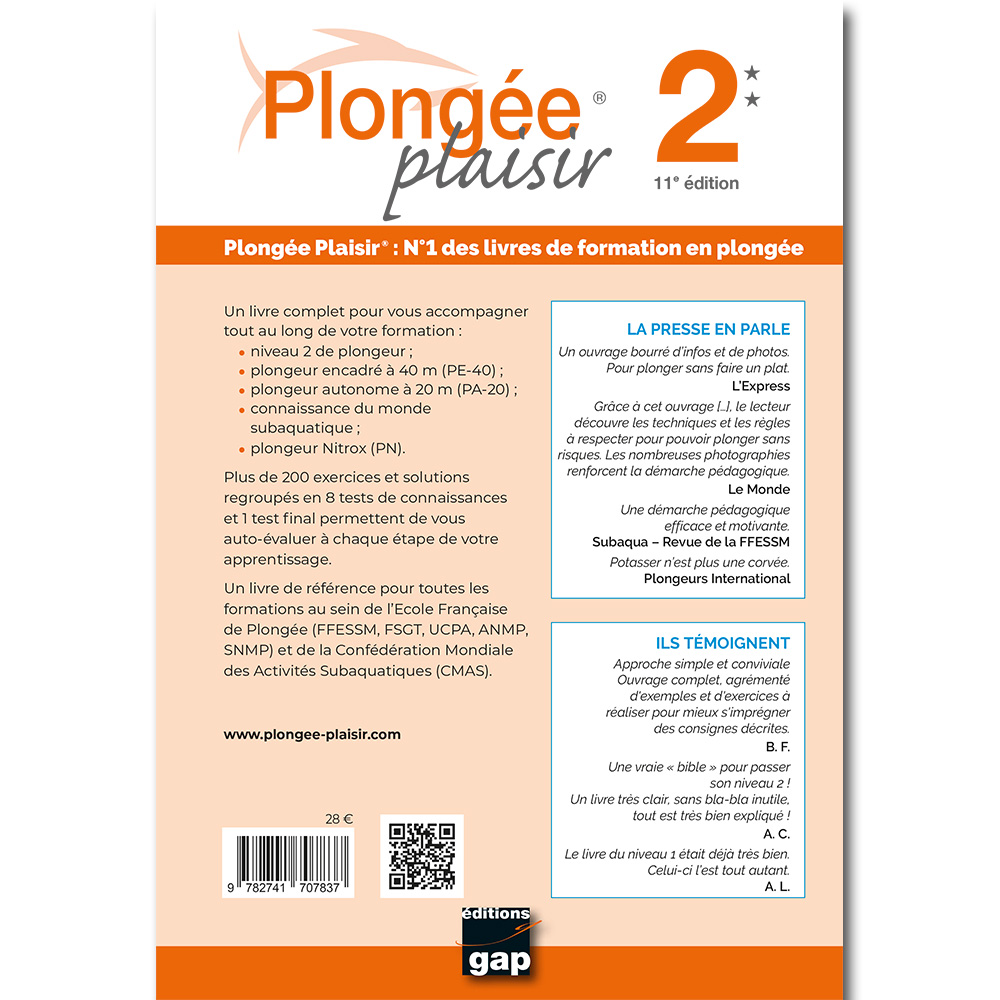 Un livre de référence pour toutes les formations au sein de l’Ecole Française de Plongée (FFESSM, FSGT, UCPA, ANMP, SNMP) et de la Confédération Mondiale des Activités Subaquatiques (CMAS).